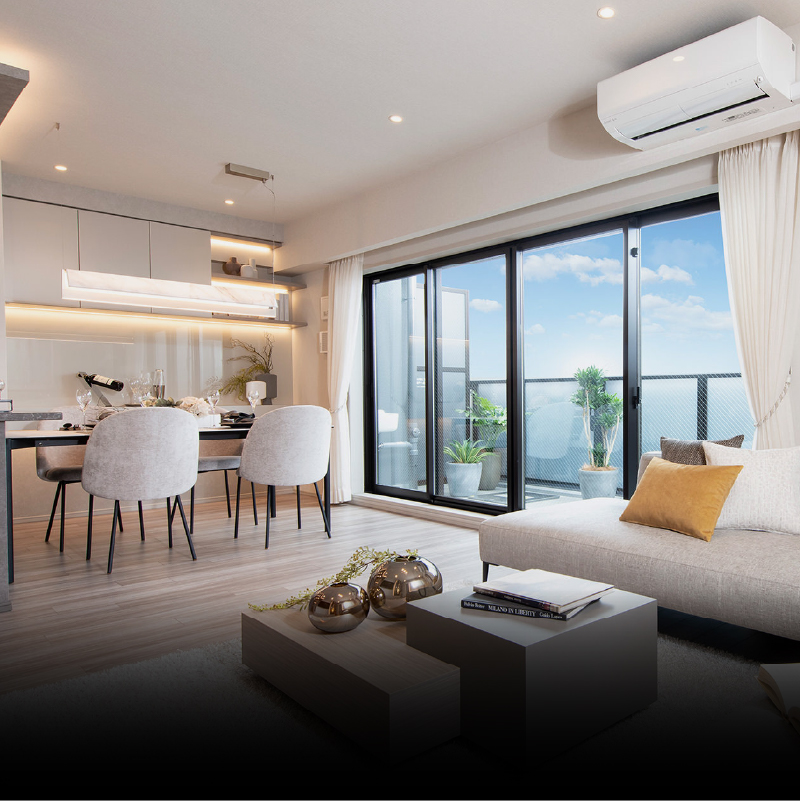 ※掲載の室内写真はモデルルーム(Aタイプ・モデルルームプラン、Oタイプ)を撮影(2024年12月)し、一部CG加工したものです。有償オプションの他、家具・備品等は販売価額に含まれておりません。有償オプションはお部屋のタイプ、階数によって設置できないものがございます。※掲載の概念図は実際のものとは異なります。※掲載の参考写真は実際の設備・仕様とは異なる場合がございます。