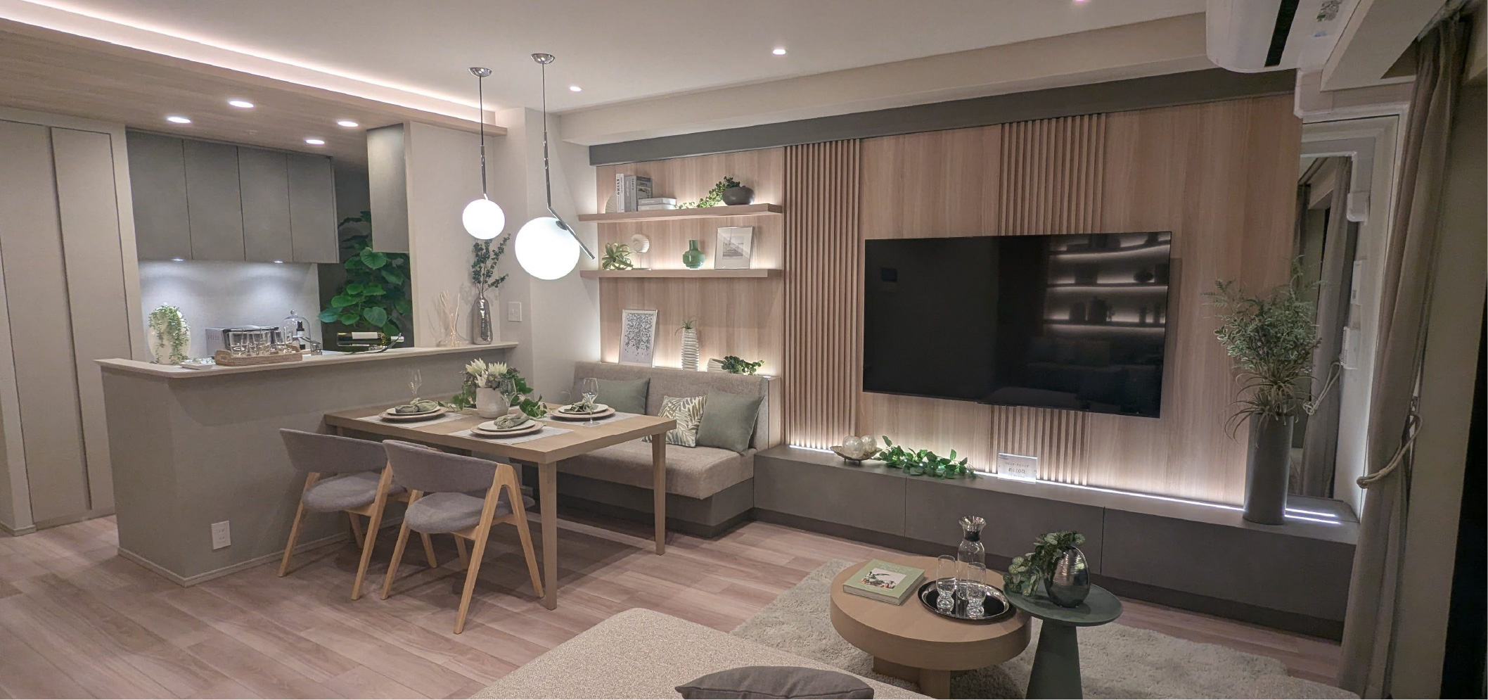 ※掲載の室内写真はモデルルーム(Oタイプ・モデルルームプラン)を撮影(2024年12月)し、一部CG加工したものです。有償オプションの他、家具・備品等は販売価額に含まれておりません。有償オプションはお部屋のタイプ、階数によって設置できないものがございます。※掲載の概念図は実際のものとは異なります。※掲載の参考写真は実際の設備・仕様とは異なる場合がございます。