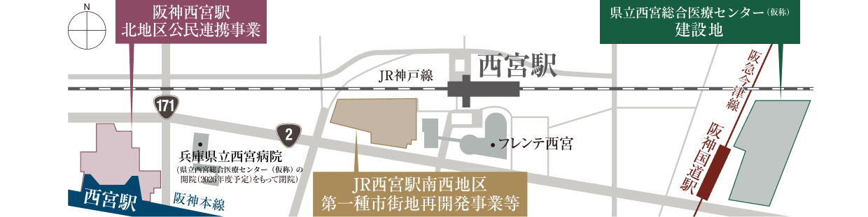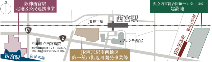 「JR西宮駅南西地区第一種市街地再開発事業」中心と