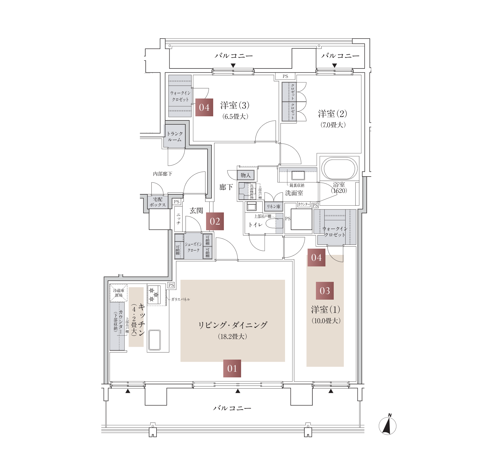 (トランクルーム、宅配ボックス面積を含む)
