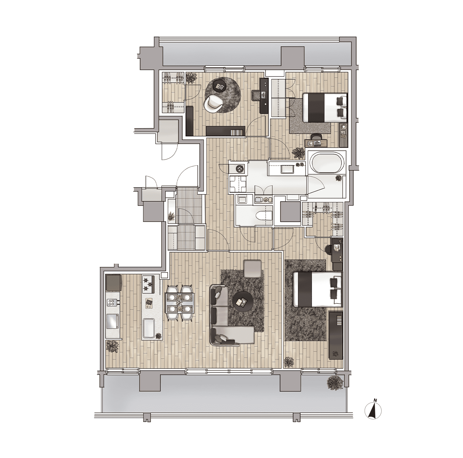 ※掲載の間取りイラストは計画段階のもので、今後変更になる場合がございます。家具配置については家具を配置した場合の一例を想定して作成したイメージで、家具の大きさ等は実際とは異なります。
